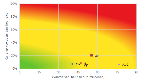 Voor de gekwantificeerde risico’s wordt in de risicomatrix zichtbaar welke de grootste risico’s zijn en waar de risicobeheersing zich met name op zal moeten richten. De risico’s zijn voorzien van een nummer. In deze paragraaf wordt aan de hand van dit nummer het risico nader toegelicht.